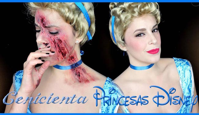 En este vídeo tutorial cambiamos un poco la historia del cuento, ya que parece que la joven y dulce Cenicienta al perder su zapato y volver a por él, se tropezó con los escalones y cayó por las escaleras volando directamente hasta el suelo y raspándose toda la cara y las manos. Una vuelta de tuerca que ha permitido realizar uno de los disfraces originales más sorprendentes para tu fiesta de disfraces. ¿Te gusta la idea? Pues presta atención y toma nota, a continuación te damos los pasos de maquillaje para princesa Cenicienta con arañazos, ¡allá vamos!