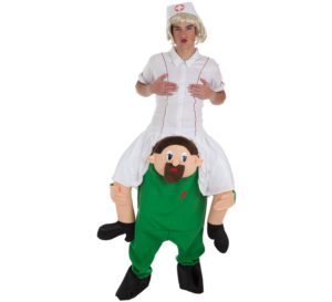 s por todo el pueblo, esto tiene que ser una broma. Hemos dicho que traeríamos disfraces divertidos y éste es uno de ellos. Ideal para grupos y personas atrevidas. El toque de cachondeo no debe perderse nunca. ¿Te atreves con este disfraz de enfermera a hombros? ¡Este año ganas el concurso de disfraces de cabeza! También lo puedes usar para una despedida de solter@ de lo más desternillante. ¡Cualquier idea es buena!