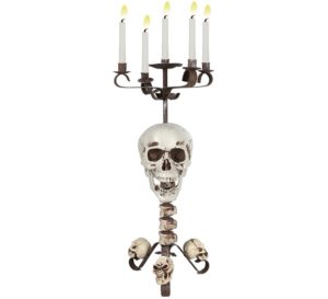 Nada mejor que un poco de luz tenue para crear un ambiente tenebroso de luces y sombras. Seguro que has contado o has oído alguna historia de terror en una situación muy parecida. Por eso y porque estamos enamorados de esta decoración, hemos elegido este candelabro. Mágico, de terror y muy elaborado. Este candelabro portavelas es ideal para decorar una mesa, un rincón desprovisto de luz o simplemente como decoración en el jardín. Tiene un tamaño considerable y te aseguramos que no pasará desapercibido. Si buscas algo más pequeño, no dejes de mirar todos los complementos para decoración de Halloween que disponemos.