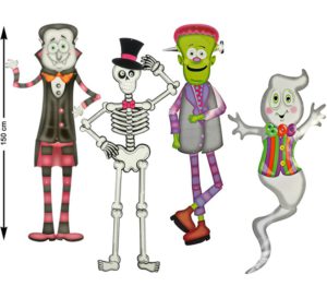 Si es una fiesta para niños o con un tono más familiar, no te puedes perder estas decoraciones. Con diseños divertidos y coloridos, de tus personajes favoritos de Halloween. ¡A los peques les encantará! Si añades a estas decoraciones unas cestas de calabaza, la fiesta de Halloween y el truco o trato serán inolvidables.
