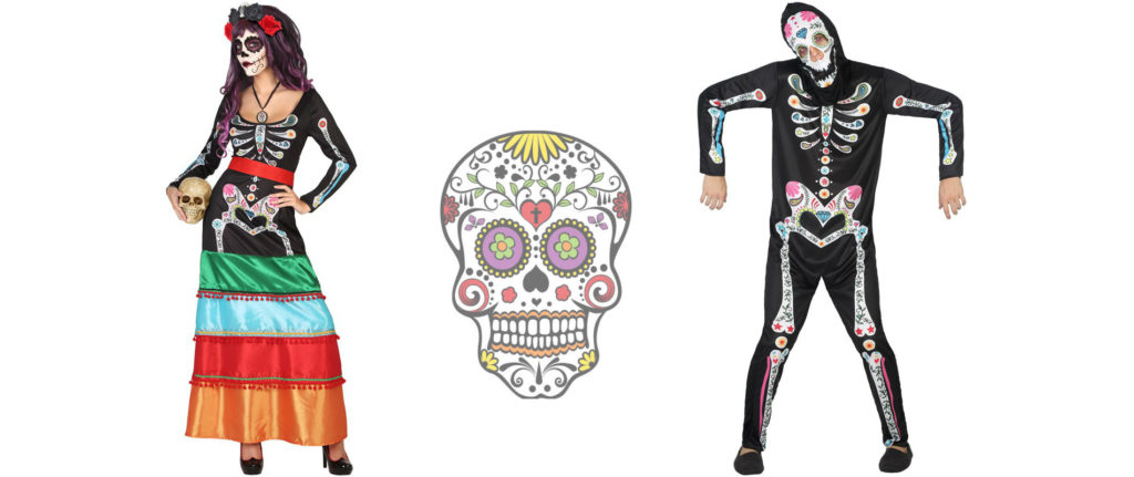 Estos disfraces de adulto es la última novedad en disfraces para Halloween. Siguiendo la tradición mexicana del Día de los Muertos, estos disfraces son muy originales. ¿Por qué? Porque no solo es el disfraz de calavera clásico para esta fecha, sino que mezcla los colores vivos, formas y figuras del Día de los Muertos mexicano. Porque no solo queremos disfrazarnos, queremos ser originales. ¿Te atreves? Los encontrarás para hombre y para mujer, con una falda llena de colores.