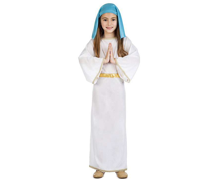 Hay otros estilos de disfraz que vienen con el velo amarillo y una túnica azul, pero el más acorde a las figuras religiosas es este disfraz que te mostramos. Aunque tú puedes elegir el que más te guste.