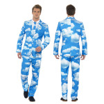 Si te gustó el traje de muro de ladrillo, espérate a ver este traje de nubes, con el que parecerá que llevas puesto un trozo de cielo, de forma literal. Es un traje de pantalón, chaqueta y corbata, muy elegante como marca la ocasión, pero con un diseño realmente diferente y original. Prepárate para sacar una sonrisa al resto de invitados, y deja que la diversión te invada.