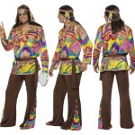 Está compuesto por una camiseta multicolor al más puro estilo hippy, unos pantalones de campana marrón y una cinta para el pelo también con detalles multicolor y un cinturón a juego. En nuestra sección de accesorios y maquillaje podrás completar tu disfraz con unas gafas de sol, una peluca, algún instrumento, etc., con los que conseguir parecer un auténtico hippy de la época.