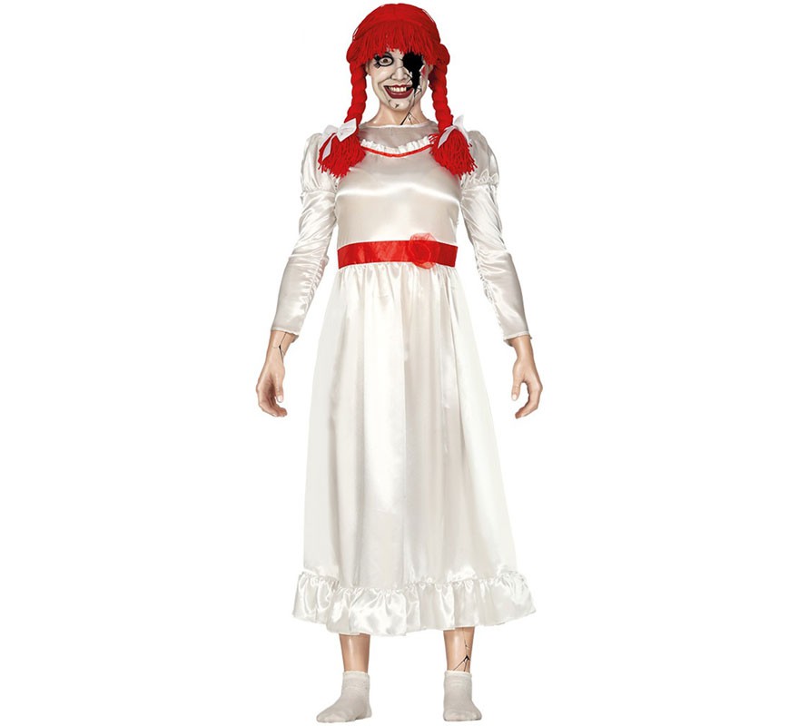 Si eres de los que disfruta de las películas de terror donde salen niños y muñecos… ¡Éste es tu disfraz! La película de Annabelle fue todo un boom en el cine de terror. Por eso, te traemos este disfraz para imitar a la muñeca diabólica de la película Annabelle.