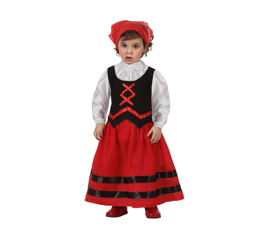 disfraz de pastora rojo y negro para bebes ideal para belenes, obras de teatro y fiestas navideñas