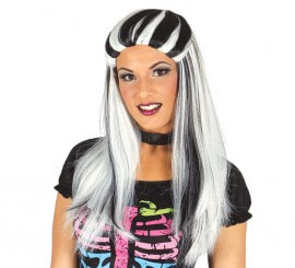 Peluca Negra y Blanca de Bruja para Halloween (Universal Adulto)