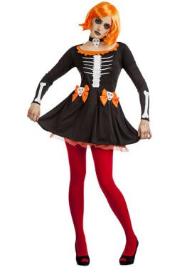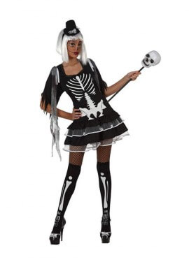 Disfraz de Esqueleto o Calavera de gala para mujer. Incluye vestido, medias y guantes. No incluye peluca ni calzado. Perfecto en fiestas de terror como Halloween. ¡Compra en un comercio online seguro, compra en DisfraZZes!