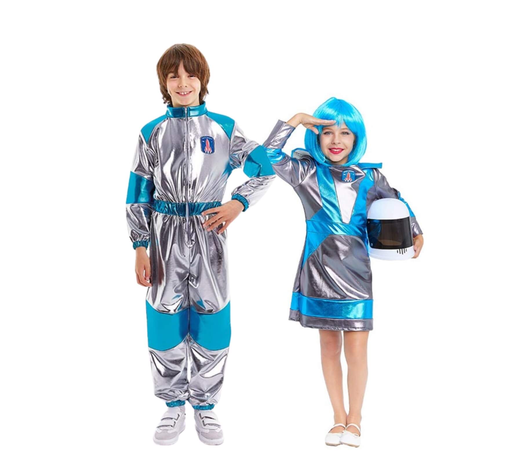 Disfraz de Astronauta plateado oscuro y azul para niña