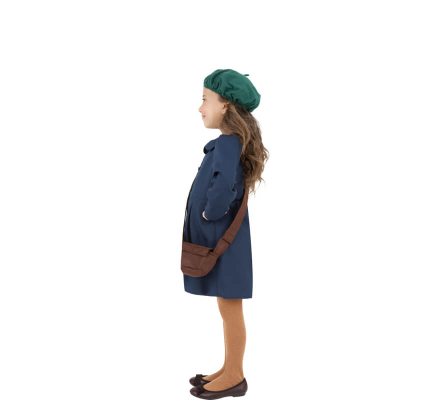 Disfraz de Evacuada de la 2ª Guerra Mundial para niña. Incluye vestido, sombrero y bolso. No incluye medias ni calzado. Ideal para representaciones de fin de curso. ¡Compra en un comercio online seguro, compra en DisfraZZes!