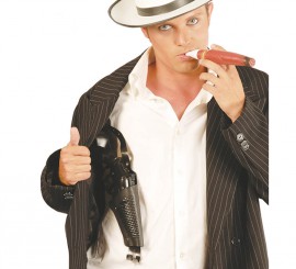 Disfraz de Gánster negro a rayas hombre. Disponible en varias tallas. Incluye disfraz SIN Zapatos y SIN Metralleta. La Metralleta la podrás ver en la sección de Complementos - Armas. Disfraz de Mafioso para hombre.